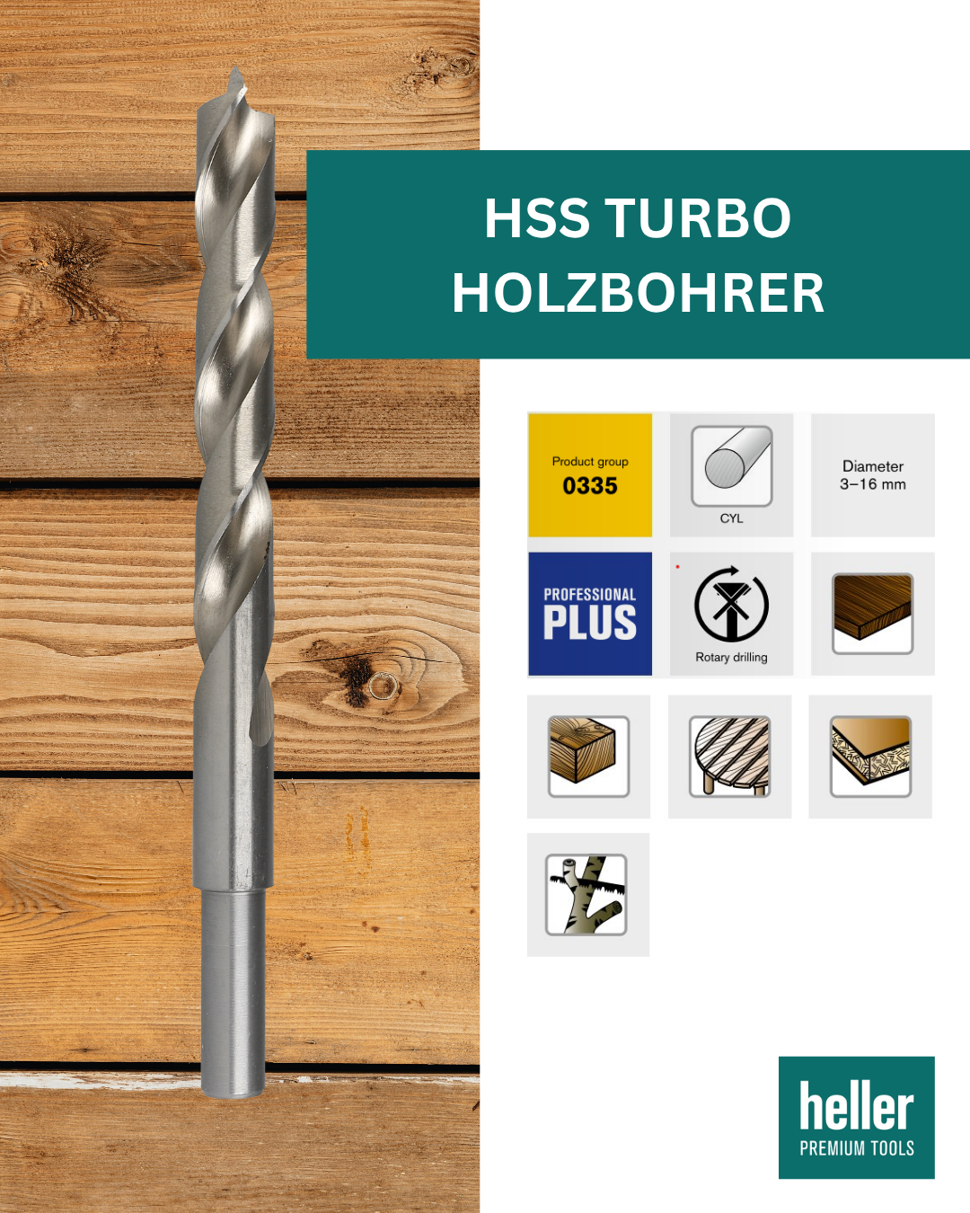 Hellers HSS Turbo Holzbohrer